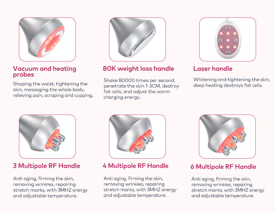 Diversified level adjustment make your body to be care comfortably. Improve skin texture by promoting the regeneration of collagen and elasticity. Improve skin sagging caused by fat and skin aging.Help eliminate waste materials in the body and promote metabolism.Negative pressure massage function can promote fat cell volume reduction. Vacuum negative pressure massage can fully absorb various skin tissues between the multi-polar thermal melting radio frequency, so that the radio frequency energy can reach the deep skin tissue more effectively. At the same time, the adsorption of negative pressure promotes blood circulation and metabolism. Let the muscle tissue be fully relaxed and relieve the fatigue of the skin and muscle tissue.